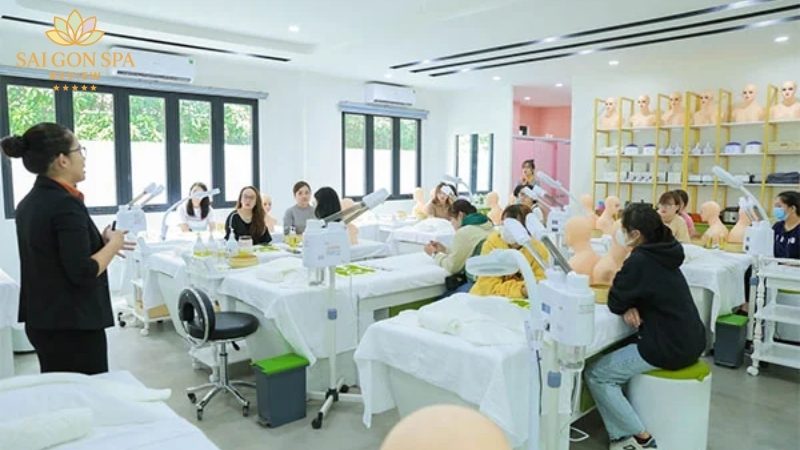 - Cơ sở vật chất hiện đại, thiết bị spa nhập khẩu, môi trường học giống spa thực tế.